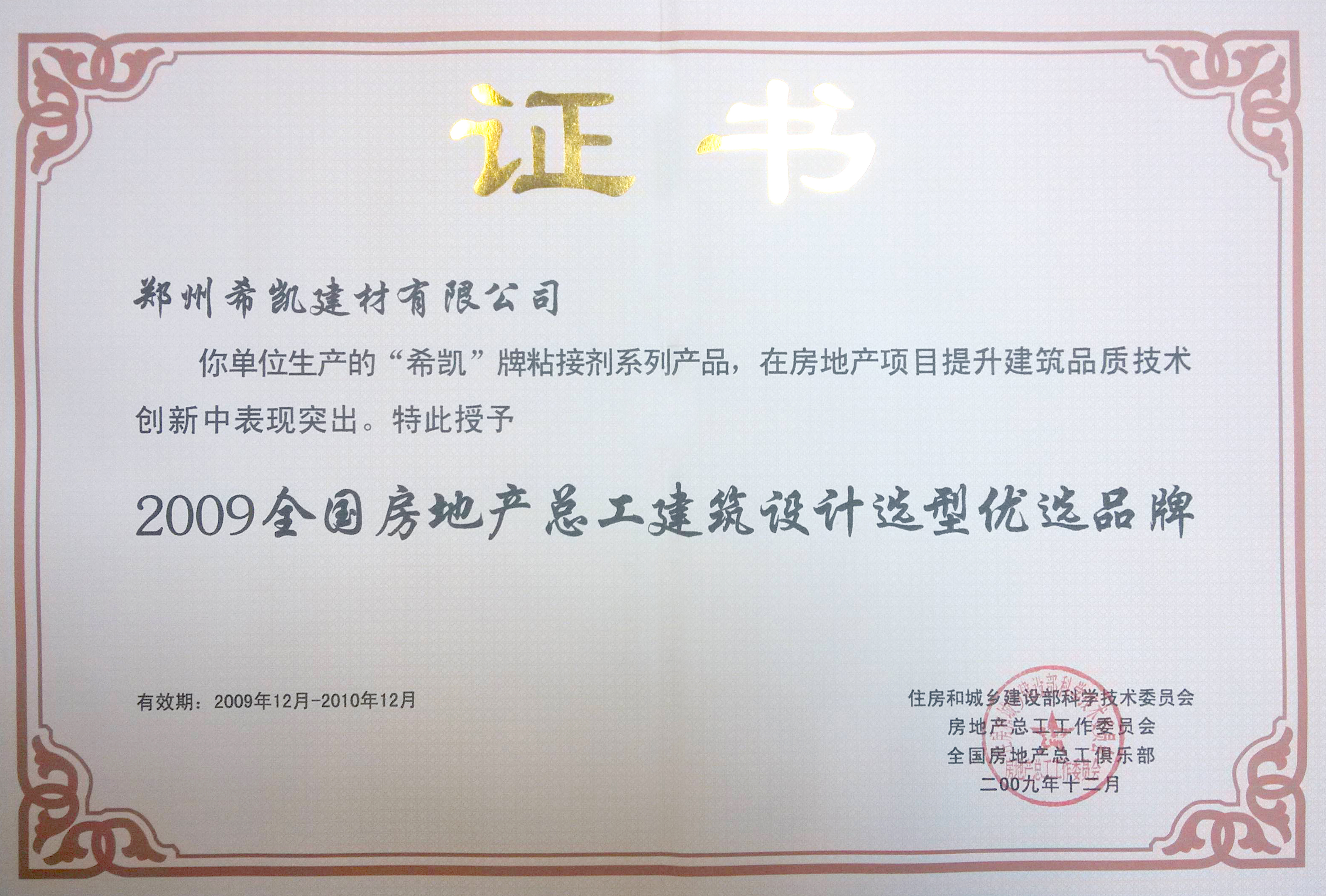 2009全國(guó)房地產(chǎn)總工建筑設(shè)計(jì)造型優(yōu)選品牌(鄭州希凱建材有限公司)